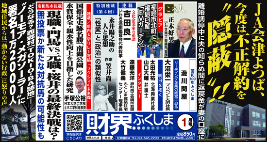 財界21の本 クロニクル昭和回想 福島県内の優良企業40社の足跡を写真で紹介する単行本『クロニクル昭和回想』 ◆財界ふくしま最新号のお知らせ 財界ふくしま2026年1月号 850円(税込) お得な 定期購読のご案内