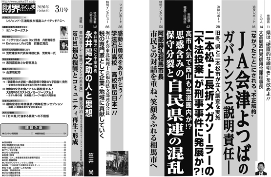 2月24日告示、3月1日投票の西郷村長選は昨年9月の同村議会定例会で現職・髙橋廣志(71)が出馬を表明。一時は「髙橋の2期連続無投票か」と見られたが、旧冬、村議の小澤佑太(37)が出馬を表明し、現職と新人による8年ぶりの一騎打ちが濃厚となっている。(旧冬末時点)本誌は選挙戦の情勢とともに2期8年の髙橋村政を検証する。